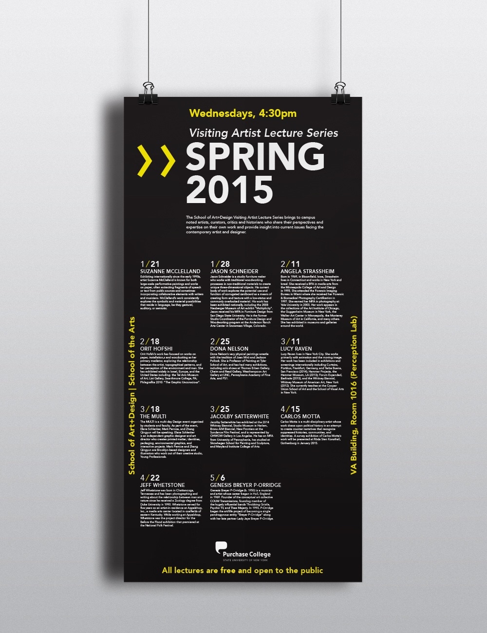 Poster for visting artist lecture series at Purchase