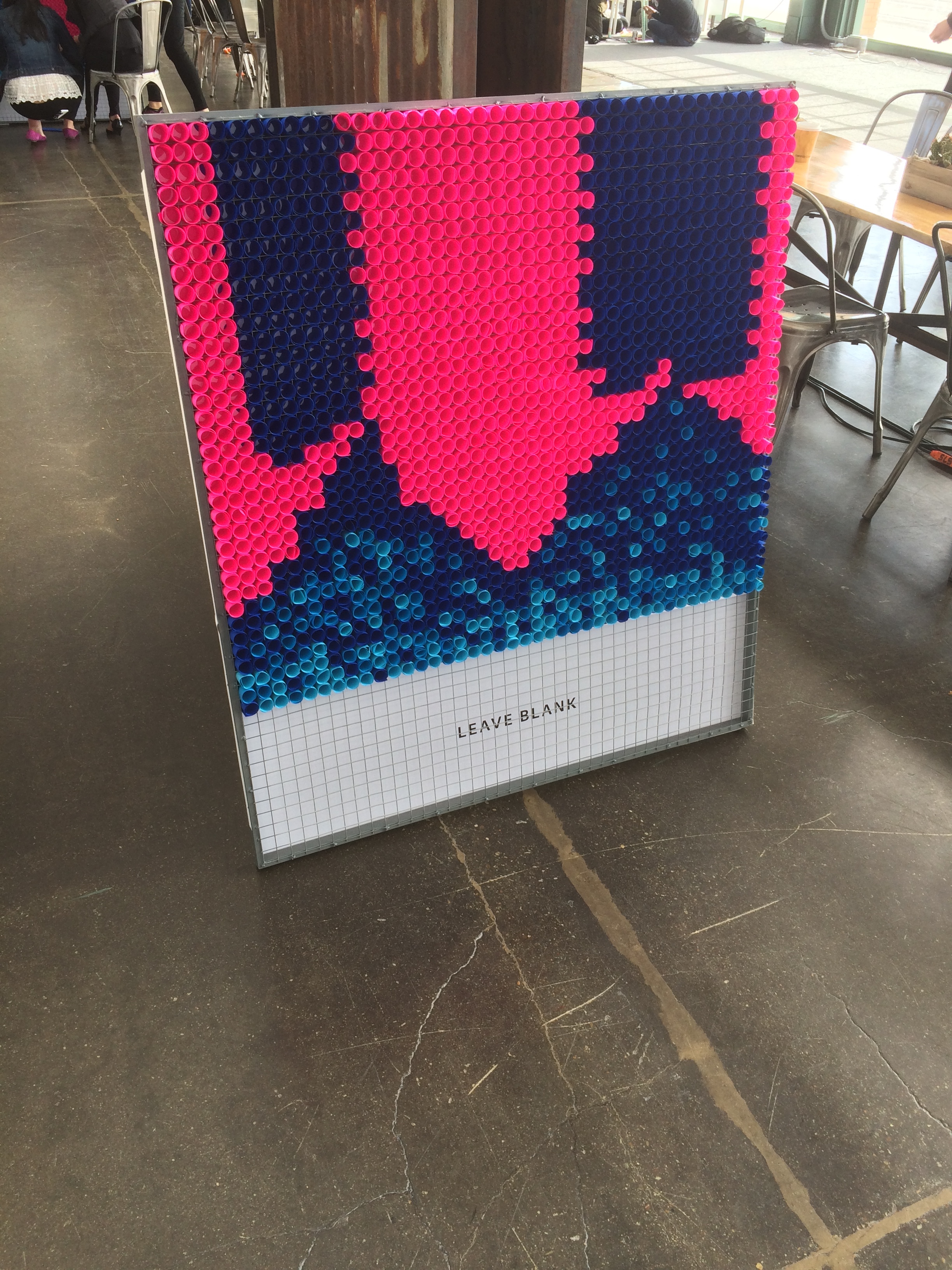 It's just making a piece of a sign that spells out make, using pieces of paper as pixels.